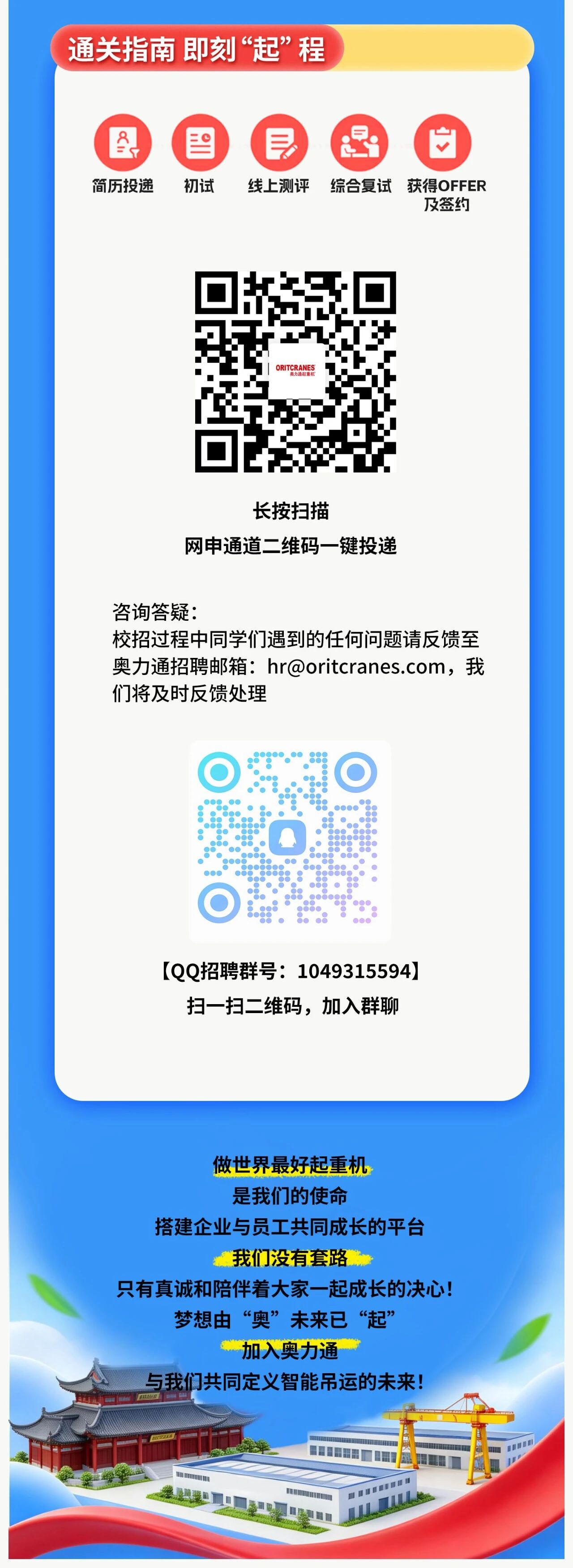 奧力通集起重機研發、制造、銷售、安裝、服務于一體,公司主要生產起重機、橋式起重機、門式起重機、雙梁起重機、單梁起重機、歐式雙梁橋式起重機、歐式單梁橋式起重機、歐式懸掛起重機、多支點懸掛起重機、歐式雙梁門式起重機、歐式單梁門式起重機、歐式半門吊、歐式壁行吊、歐式懸臂吊、歐式輕型起重機等通用標準起重機,以及全自動智能化起重機、冶金類起重機、防爆類起重機、航空專用起重機、核電站專用起重機、造紙專用起重機、電廠起重機等特殊專用起重機。