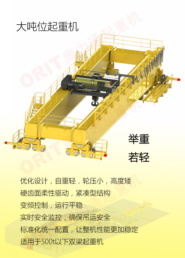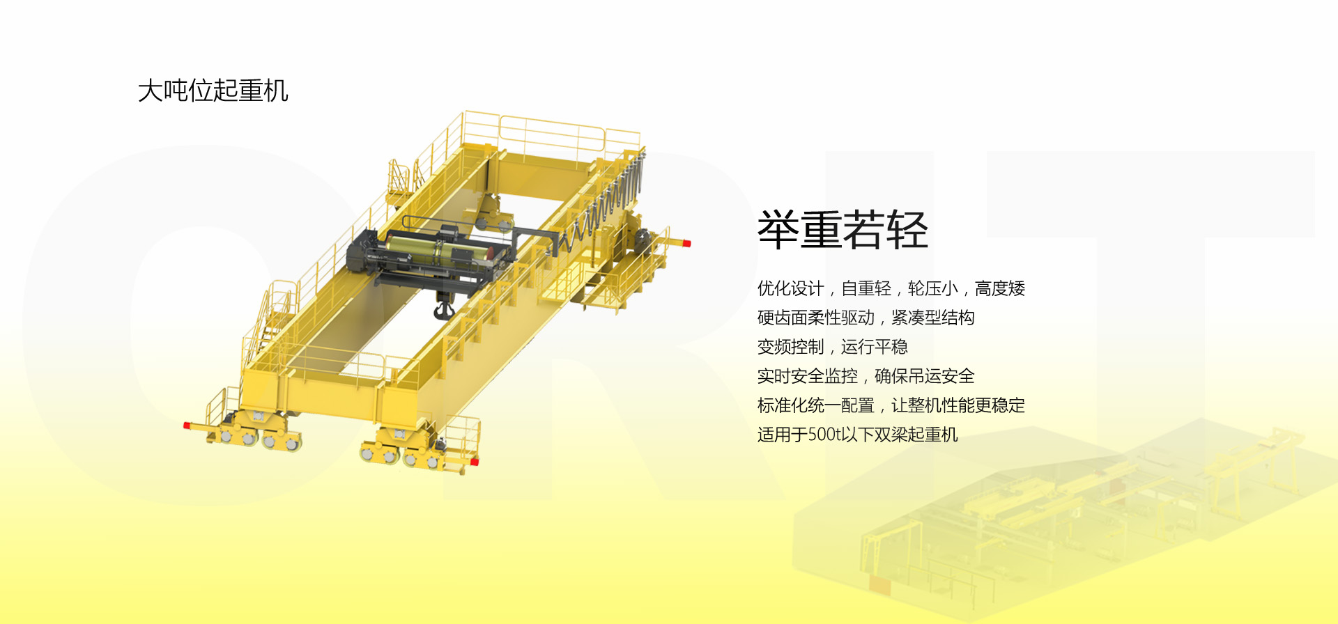 奧力通集起重機研發、制造、銷售、安裝、服務于一體,公司主要生產起重機、橋式起重機、門式起重機、雙梁起重機、單梁起重機、歐式雙梁橋式起重機、歐式單梁橋式起重機、歐式懸掛起重機、多支點懸掛起重機、歐式雙梁門式起重機、歐式單梁門式起重機、歐式半門吊、歐式壁行吊、歐式懸臂吊、歐式輕型起重機等通用標準起重機,以及全自動智能化起重機、冶金類起重機、防爆類起重機、航空專用起重機、核電站專用起重機、造紙專用起重機、電廠起重機等特殊專用起重機。