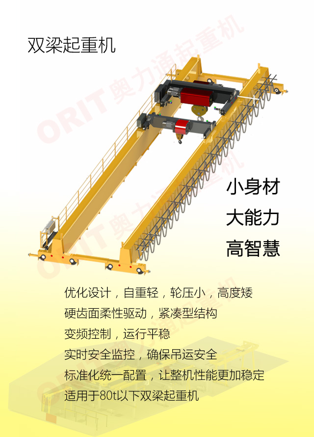 奧力通集起重機研發、制造、銷售、安裝、服務于一體,公司主要生產起重機、橋式起重機、門式起重機、雙梁起重機、單梁起重機、歐式雙梁橋式起重機、歐式單梁橋式起重機、歐式懸掛起重機、多支點懸掛起重機、歐式雙梁門式起重機、歐式單梁門式起重機、歐式半門吊、歐式壁行吊、歐式懸臂吊、歐式輕型起重機等通用標準起重機,以及全自動智能化起重機、冶金類起重機、防爆類起重機、航空專用起重機、核電站專用起重機、造紙專用起重機、電廠起重機等特殊專用起重機。